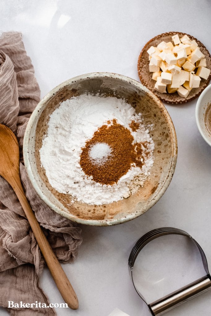 - In a medium mixing bowl, whisk together the almond flour, tapioca flour, coconut sugar, and salt.1 cup (96g) blanched almond flour, ¾ cup (105g) tapioca flour, 2 tablespoons coconut sugar, ¼ teaspoon sea salt