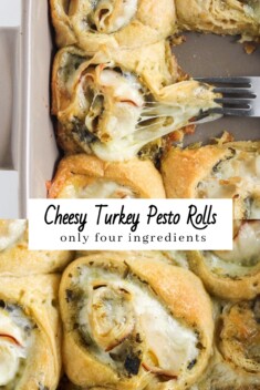 These Cheesy Turkey Pesto Rolls make a great snack or appetizer perfect for tailgating or the holidays! Gooey mozzarella makes this easy four-ingredient recipe absolutely irresistible.